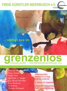 Zu unserer großen Freude wurde im Frühjahr des Jahres 2020 die Künstlergruppe der Freien Künstler Meerbusch e.V. eingeladen, in der Düsseldorfer Begegnungsstätte „Grenzenlos“ ihre Werke auszustellen. Im Zeitraum vom 3. Juli bis 16. September 2020 nahmen acht Künstler/Innen der FKM diese Gelegenheit wahr, im großen Ausstellungsraum des „Grenzenlos“ ihre Gemälde zu präsentieren.