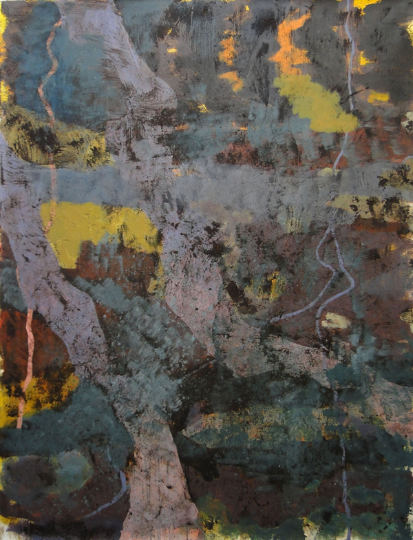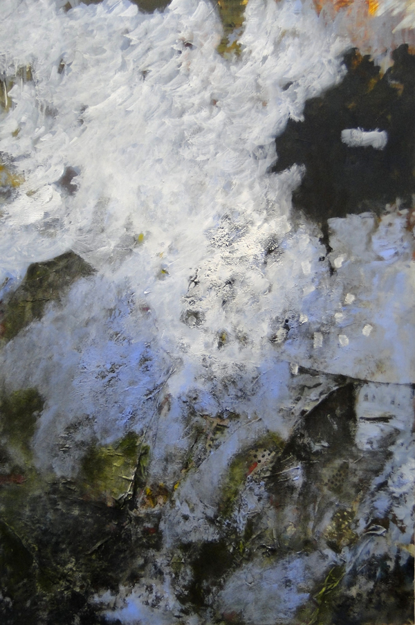 Meine abstrakten Kompositionen sind in Naturnähe, ohne diese wirklich darzustellen. Zwischenschichten entstehen, erzählen vom Werden und Vergehen. Man meint, Spuren von Felsen Schluchten Höhlen oder Pflanzen zu erkennen, die sich dann wieder untereinander in neuen Schichten, die aufgetragen werden, verlieren, während alte Spuren hier und da noch sichtbar bleiben.