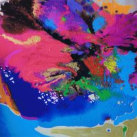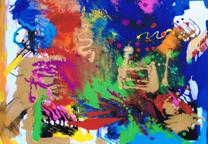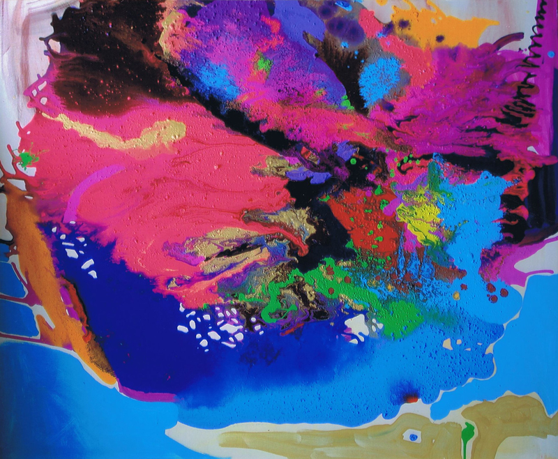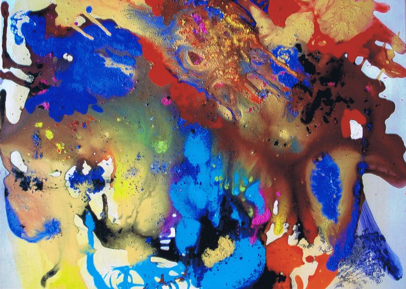 Die flüssigen Pigmente treffen oft einmalig aufeinander, schmelzen zu klaren Kombinationen ineinander, wie ich das in meinem Kunstbuch „Opium der Farben“ beschrieben habe.