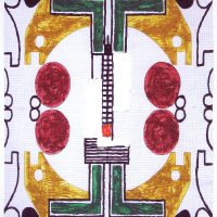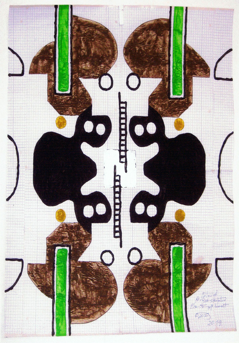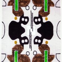 Bodenskulpturen, Entwürfe für Straßenkanaldeckel, Collage auf Makulatur, Mischtechnik, Dispersionsfarbe auf Karopapier.